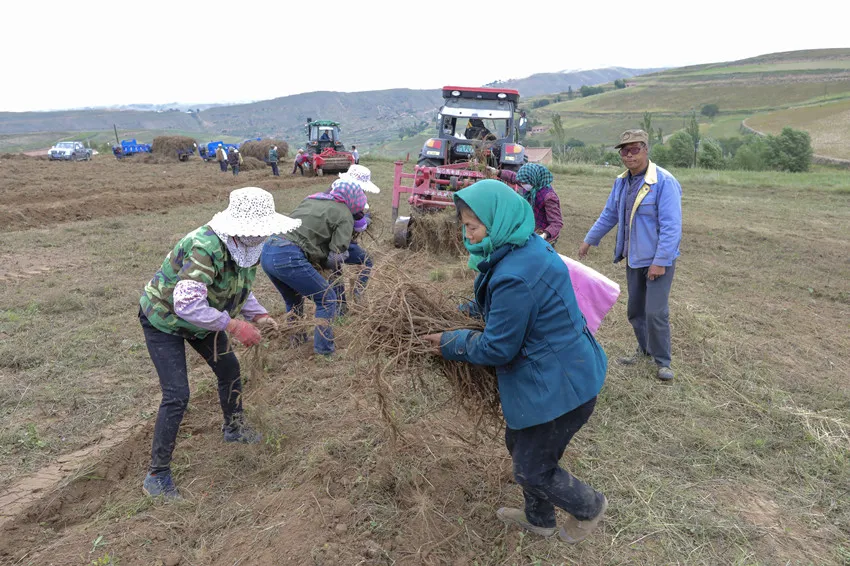 榆中县积极探索农业产业发展用地保障新模式,加快推进农村土地经营权流转,促进土地向龙头企业、专业合作社和种植大户流转。引进华源、正源、百草、润康等4家中药材种植加工企业。建成中药材储藏基地3个,库容总量2万吨,饮片加工基地3处,年产饮片1200余吨。同时,通过多种方式,大力扶持农户参与中药材产业,以订单农业扶持形式,合作社为农户统一拉运苗木,降低运输成本,与农户签订收购协议,制定市场保护价,最大限度降低农户种植成本和市场风险,有效加快了当地群众增收致富步伐。